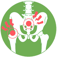 | Боли в крестце и тазобедренном суставе Локальные или идущие от вышележащих частей позвоночника в бедро и ногу |